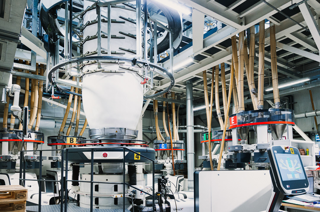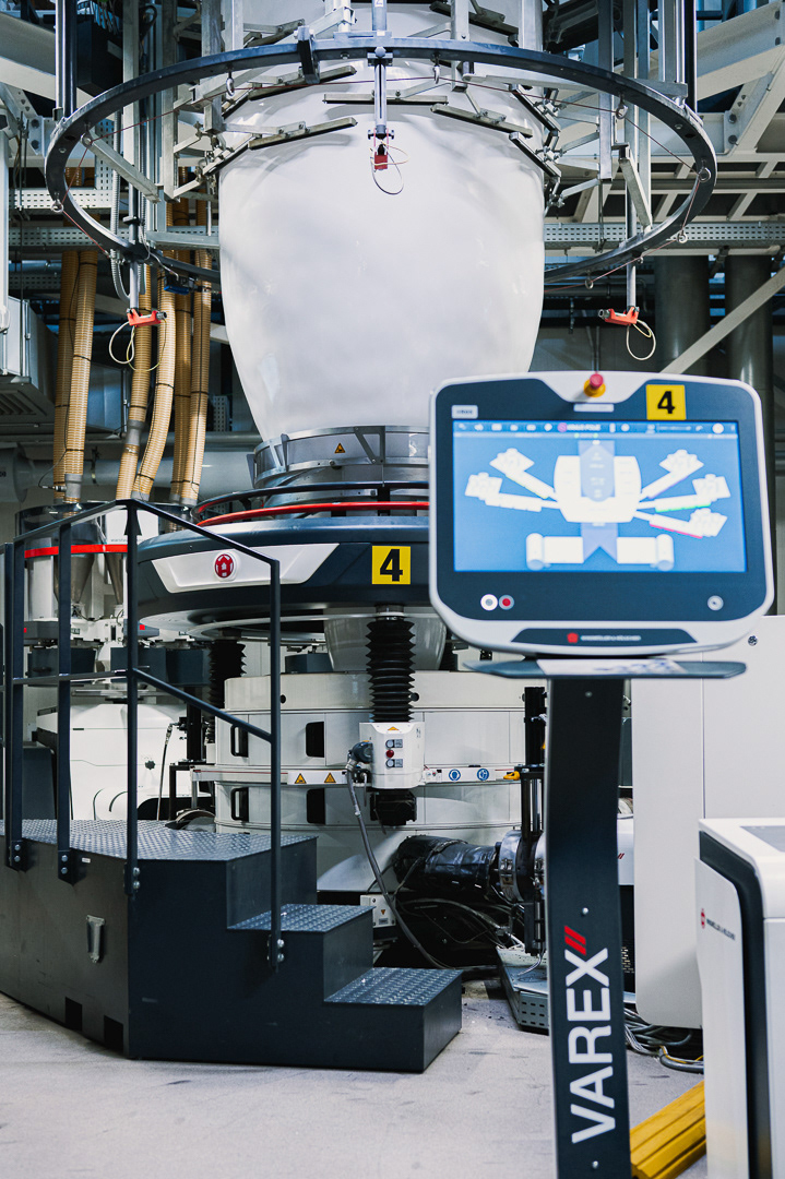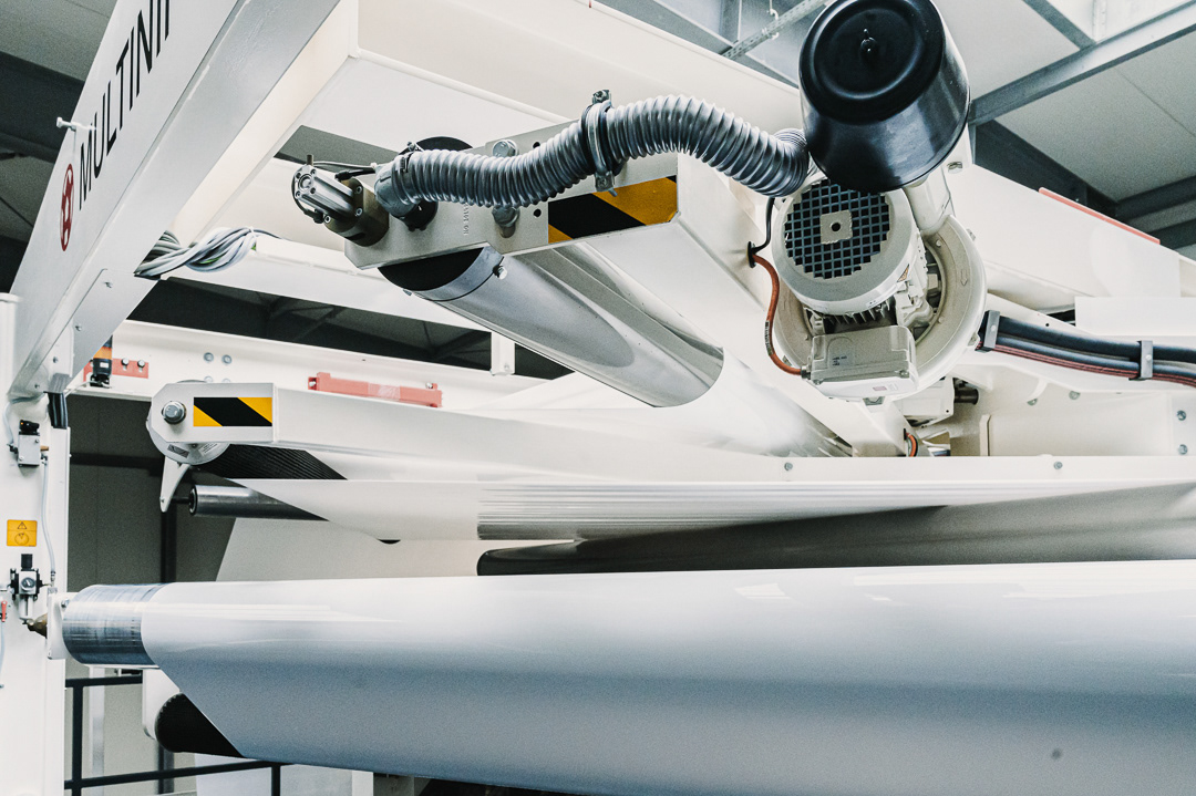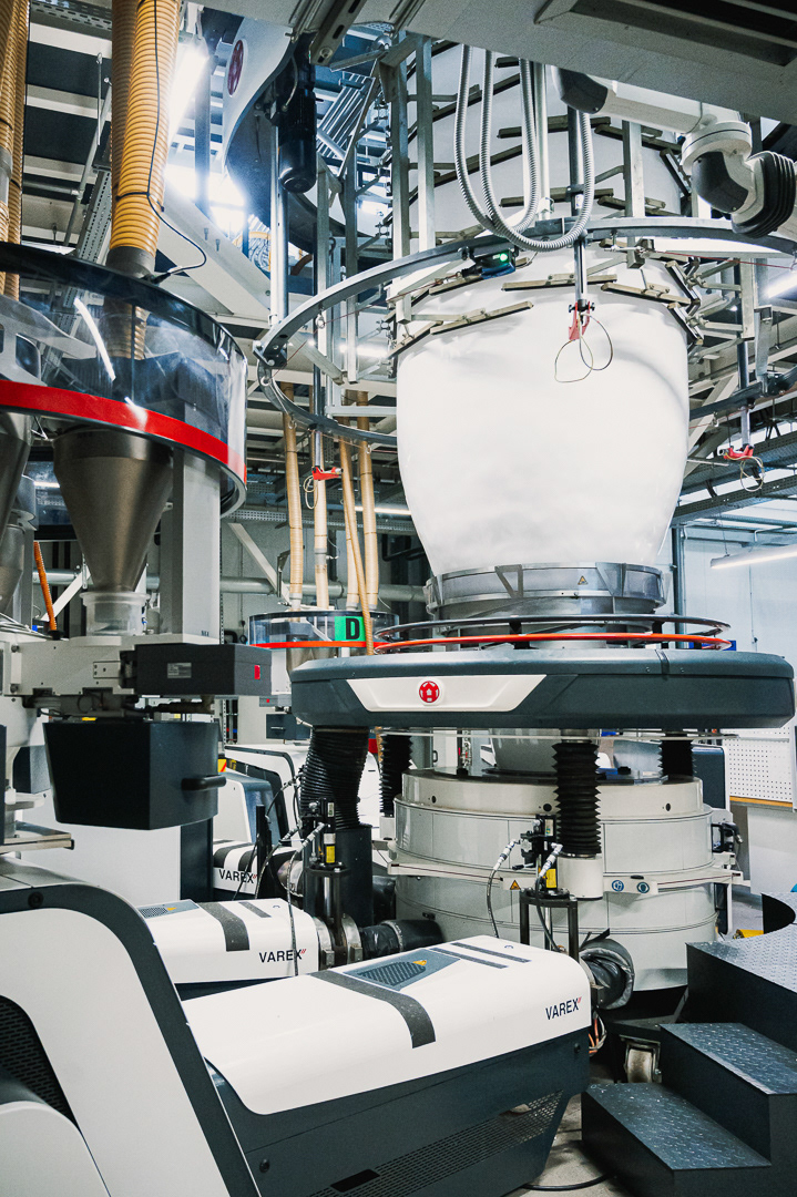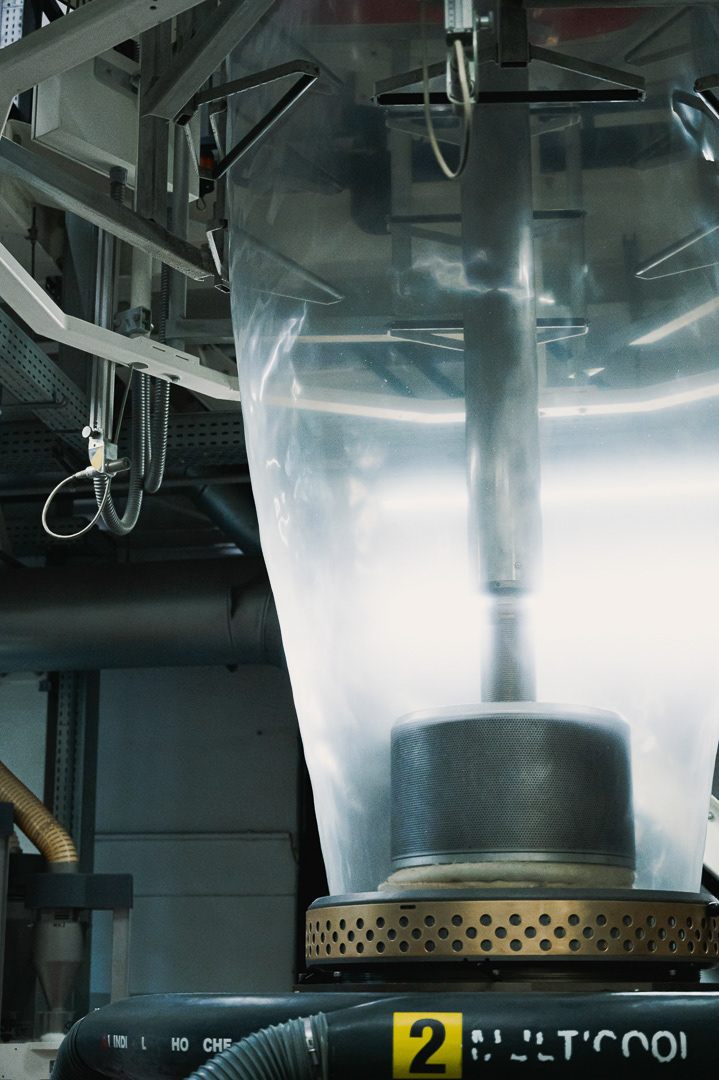 Skupiliśmy się na uchwyceniu kluczowych etapów produkcji: od tworzenia rękawa foliowego, przez transport surowca i jego obróbkę, aż po gotowy materiał schodzący z maszyn. Zdjęcia podkreślają skalę hali, czystość procesu oraz zaawansowanie technologiczne zakładu.