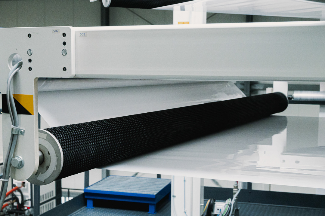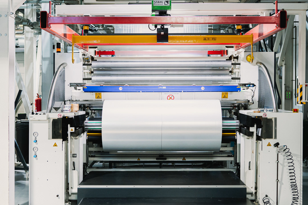 Galeria przedstawia linię produkcyjną folii w zakładzie Kraus Folie w Kaliszu. Zdjęcia pokazują proces wytłaczania folii, nowoczesne ekstrudery, systemy prowadzenia materiału oraz układ maszyn pracujących w pełnym cyklu technologicznym.